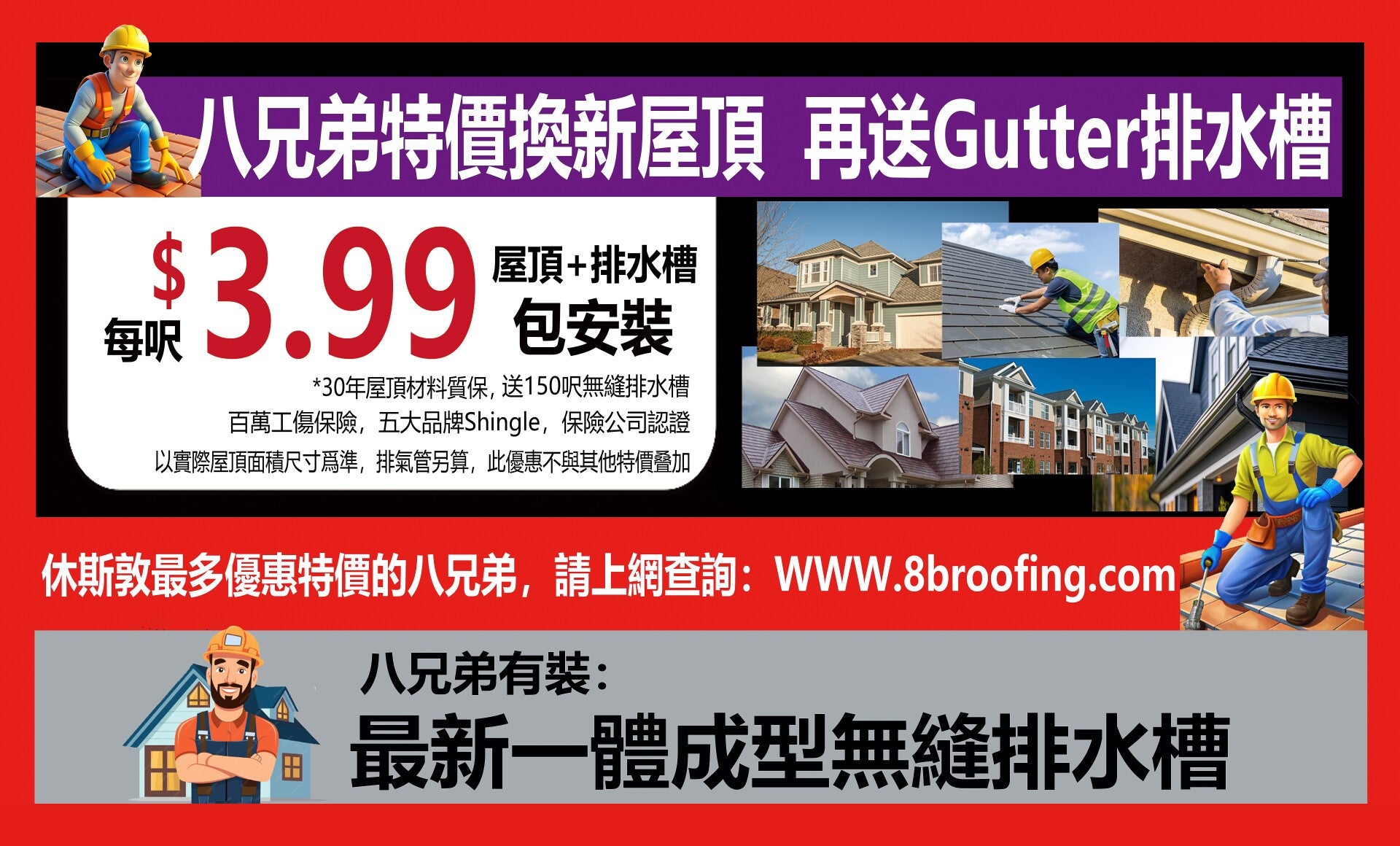 "我在外州工作,出租的物業屋頂老舊,8兄弟價格好,換了新屋頂,謝謝8兄弟協助拿到了優惠的保費。"